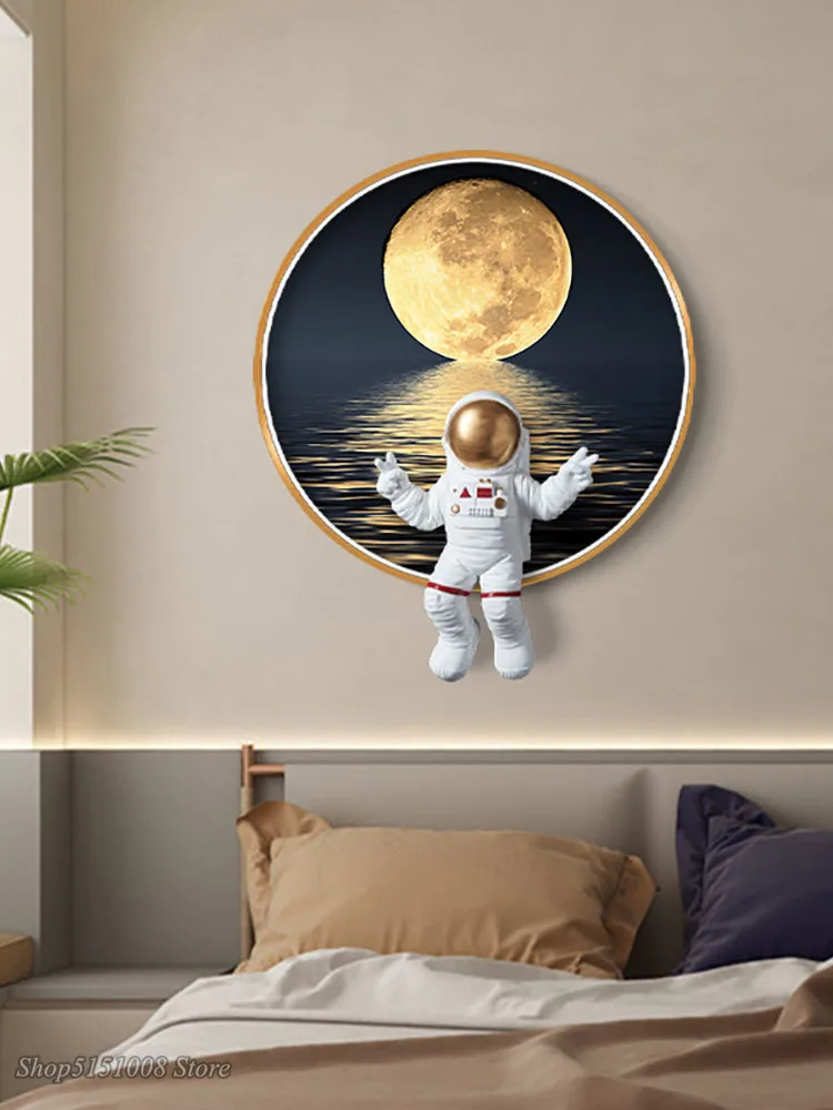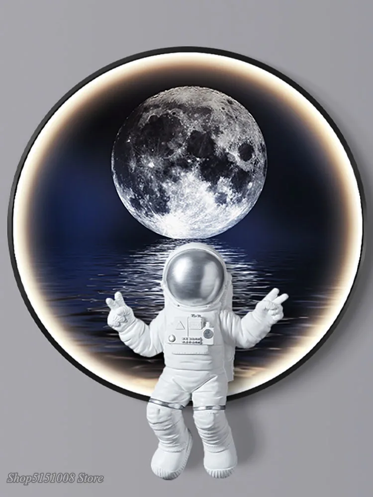 Bring a touch of cosmic wonder into your home with this modern Universe-inspired Astronaut Moon LED Wall Lamp. Designed with eye-catching detail, this piece blends soft ambient lighting with playful space-themed artistry—perfect for bedrooms, game rooms, living rooms, or any modern décor setting. The warm LED glow highlights the sculpted astronaut and moon elements, creating an enchanting focal point that elevates your background décor. Whether styled for children, teens, or adults who love space, this lighting fixture adds personality, atmosphere, and a futuristic design element to any room.