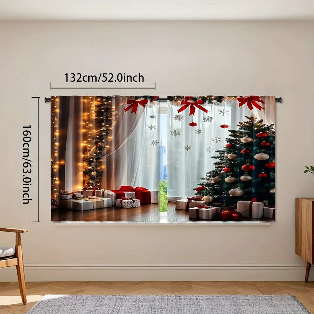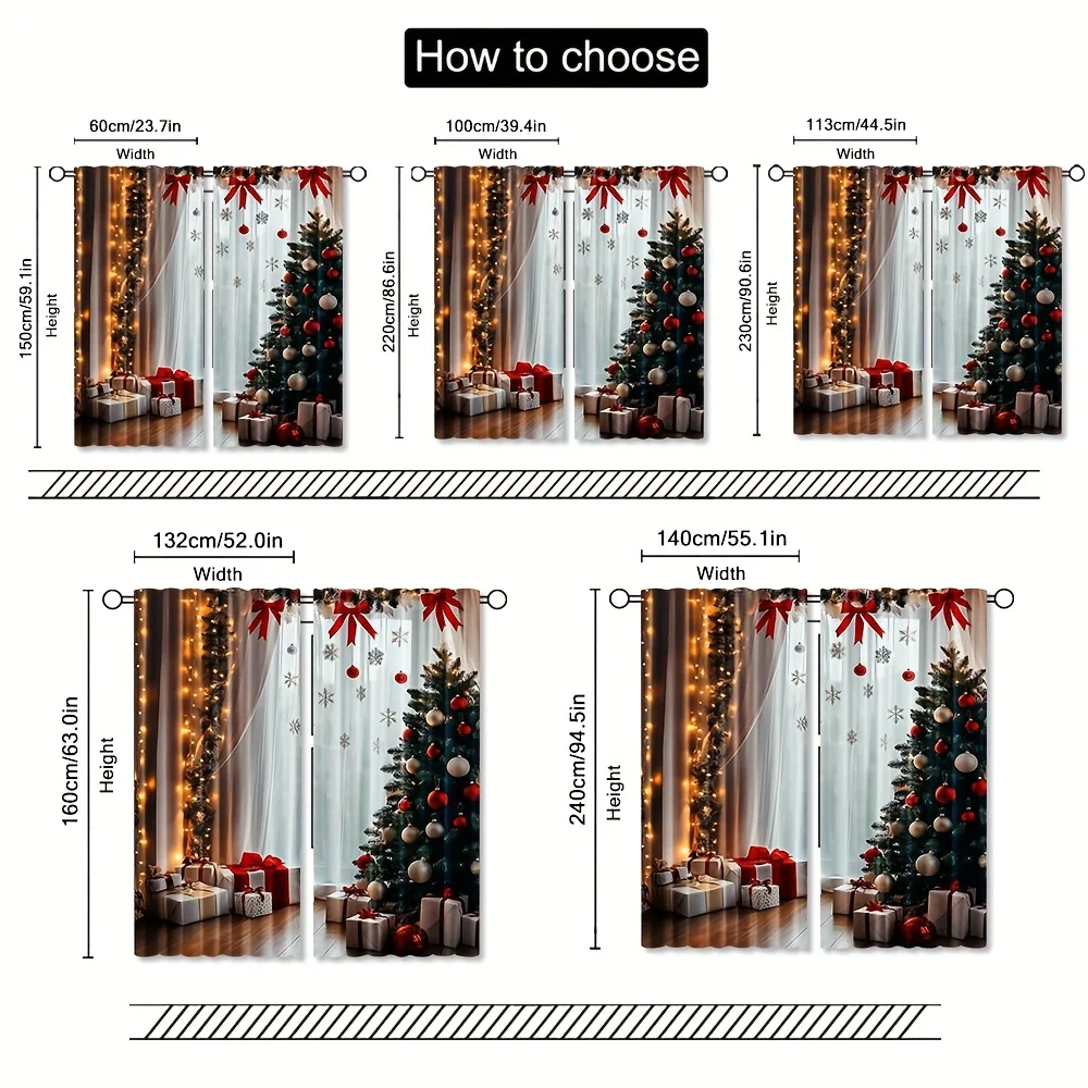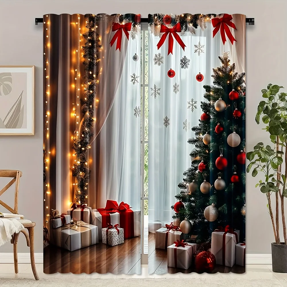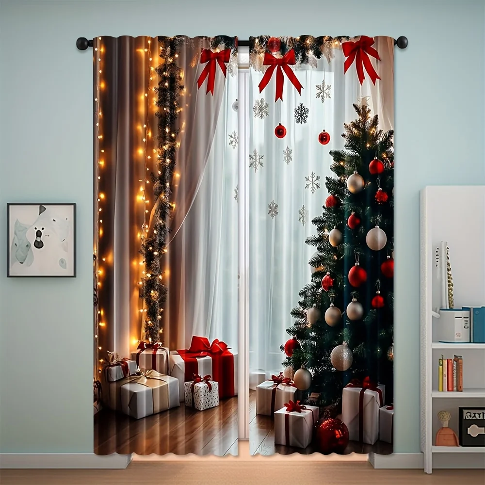 Add classic holiday charm to your home with this 2-piece set of Christmas Bow Tree Curtains, featuring festive bow, tree, and seasonal accents printed on durable, machine-washable polyester. Designed with a convenient rod pocket, these curtains hang easily and drape beautifully in living rooms, bedrooms, or holiday-decorated doorways. The light-filtering fabric allows soft natural light to illuminate the festive design while creating a warm and inviting Christmas atmosphere. Perfect for enhancing your seasonal décor, these curtains add a cheerful and elegant holiday touch to any space.