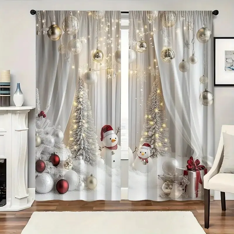 Bring festive cheer to your home with this 2-piece set of Christmas printed curtains featuring charming snowman and tree patterns. Designed to instantly transform any room into a warm and joyful holiday space, these lightweight drapes add color, character, and seasonal charm to bedrooms, living rooms, kitchens, or playrooms. The soft fabric provides gentle light filtering while showcasing vibrant, winter-themed artwork that enhances your holiday décor. Easy to hang and perfect for creating a cozy Christmas atmosphere, these curtains make a delightful addition to your seasonal decorating.