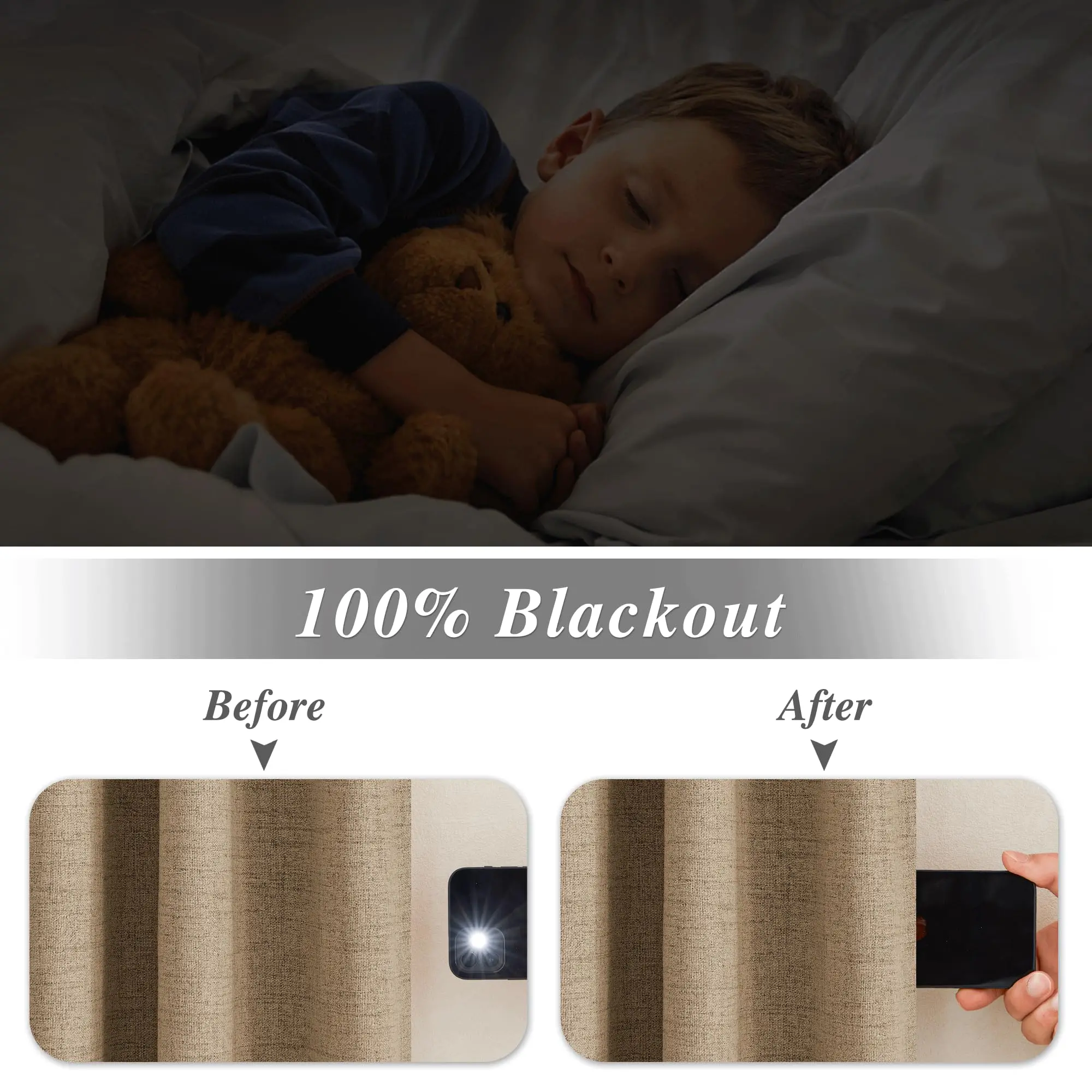Upgrade your home with these custom-made solid color blackout curtains, crafted from high-quality faux linen for a modern, textured look that suits any décor. Designed with an impressive 310 cm height, they provide full-length coverage ideal for tall windows and contemporary living spaces. The 100% blackout lining blocks out sunlight, enhances privacy, and improves thermal insulation—perfect for bedrooms, living rooms, and media rooms. With their elegant drape and customizable sizing, these curtains deliver a clean, sophisticated finish while creating a calm, darkened environment for better rest and comfort.