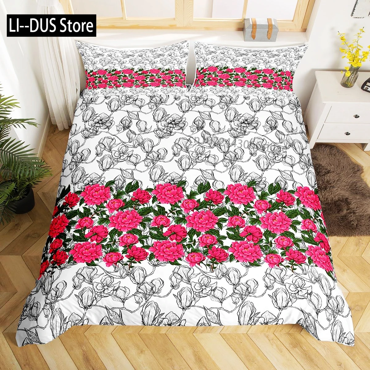 Bring timeless elegance to your bedroom with this Queen/Full Peony Floral Duvet Cover Set, featuring a beautifully printed peony pattern that adds softness and charm to any space. This 3-piece set includes a smooth duvet cover and two matching pillowcases, crafted from comfortable, breathable fabric for a cozy night’s sleep. The delicate floral design blends classic beauty with modern style, making it perfect for feminine, romantic, or nature-inspired bedroom décor. Easy to wash and maintain, this set instantly refreshes your room with fresh, graceful elegance.
