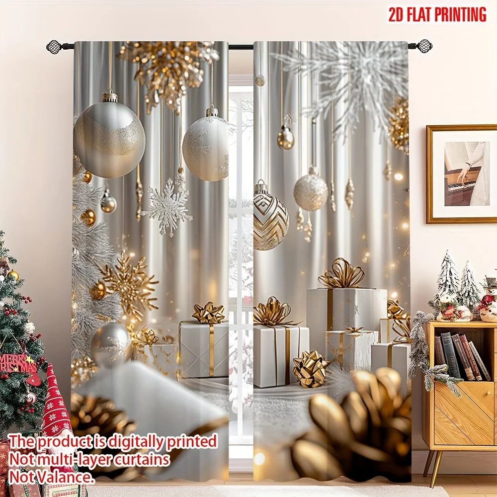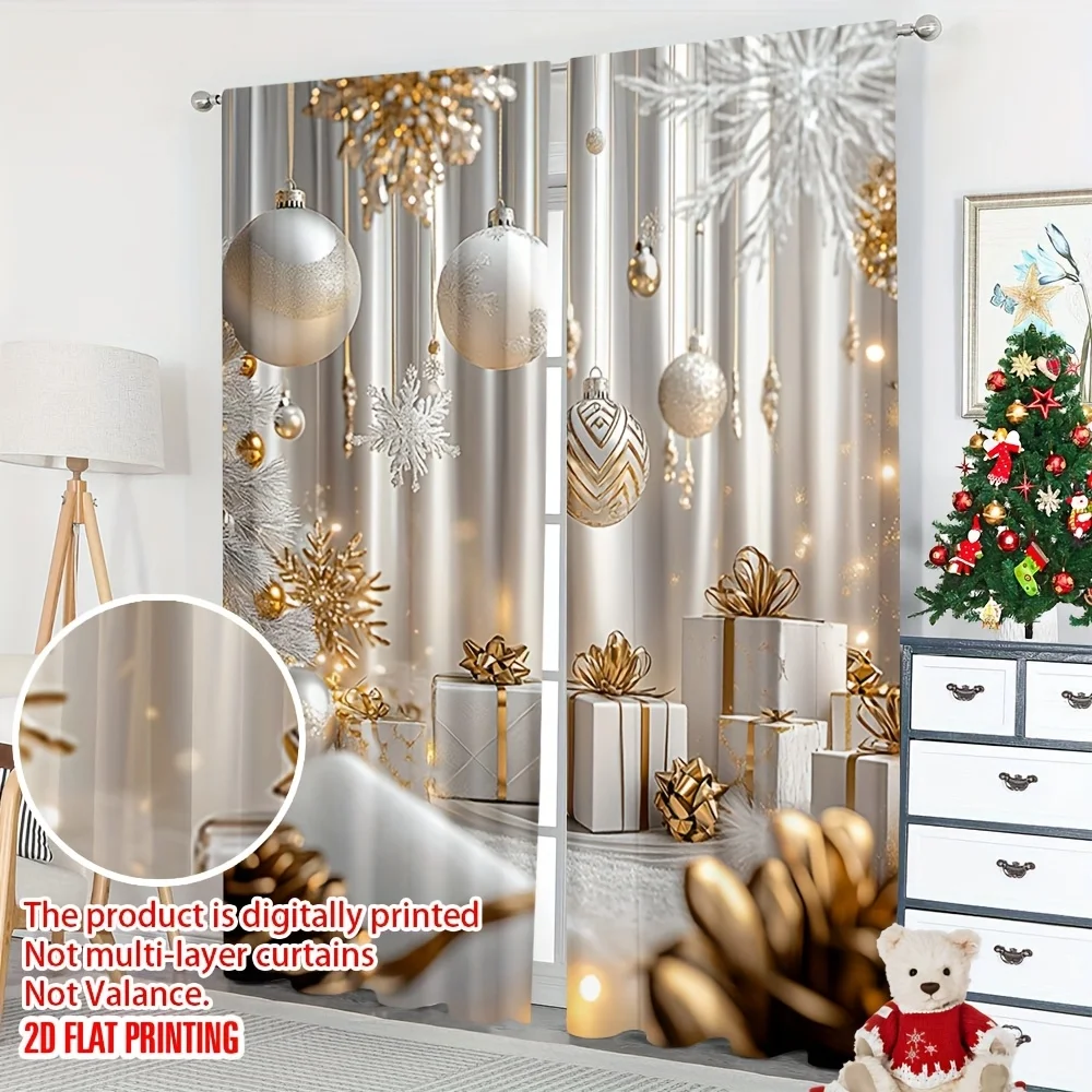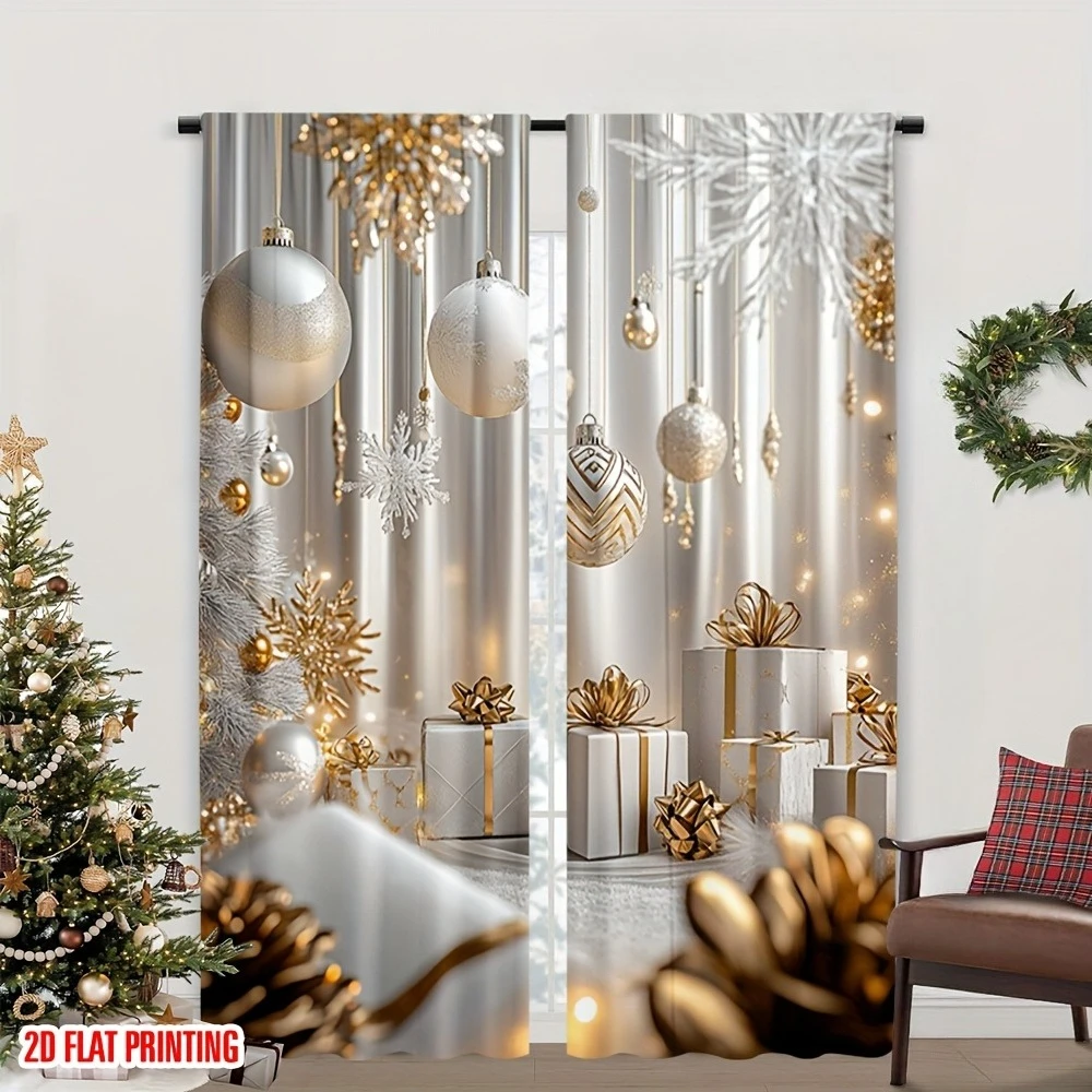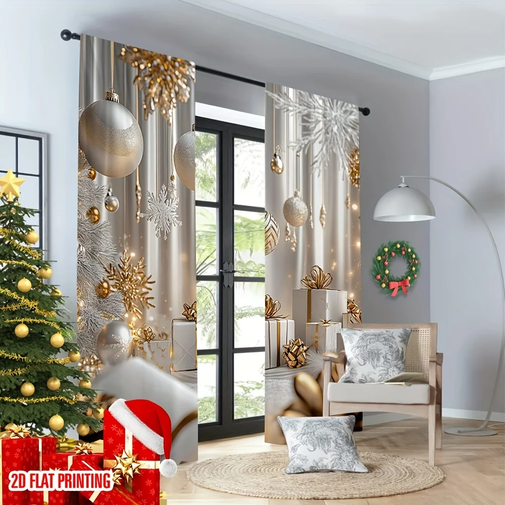 Bring festive elegance to any room with this 2-piece set of Christmas gold print curtains, designed to add warm holiday cheer to your bedroom, kitchen, office, or living room. The shimmering gold patterns create a sophisticated seasonal look, while the light-filtering fabric allows natural light to softly illuminate your space. Easy to hang and perfect for enhancing your Christmas décor, these stylish panels transform any window into a festive focal point. Ideal for creating a cozy, cheerful holiday atmosphere throughout your home or workspace.