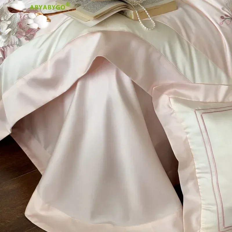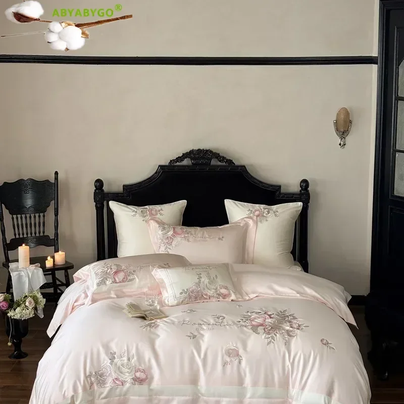 Elevate your bedroom with this High-End Luxury Pink Chic Floral Embroidery Bedding Set, crafted from premium 100S long-staple cotton for a silky-soft, breathable, and durable finish. The delicate floral embroidery adds feminine charm and refined elegance, creating a beautifully cohesive and upscale look. This premium set includes a luxurious duvet cover, smooth bed sheet, and matching pillowcases—perfect for adding a sophisticated, romantic touch to any Queen or King bed. With its high-quality craftsmanship and irresistibly soft texture, this bedding set transforms your space into a serene, stylish, and luxurious retreat.