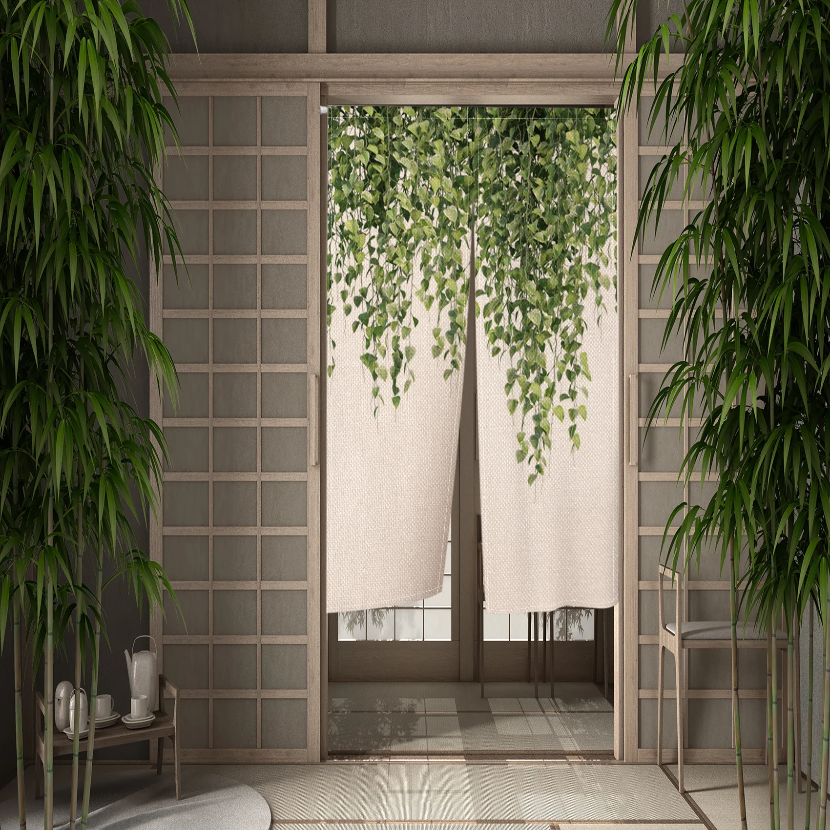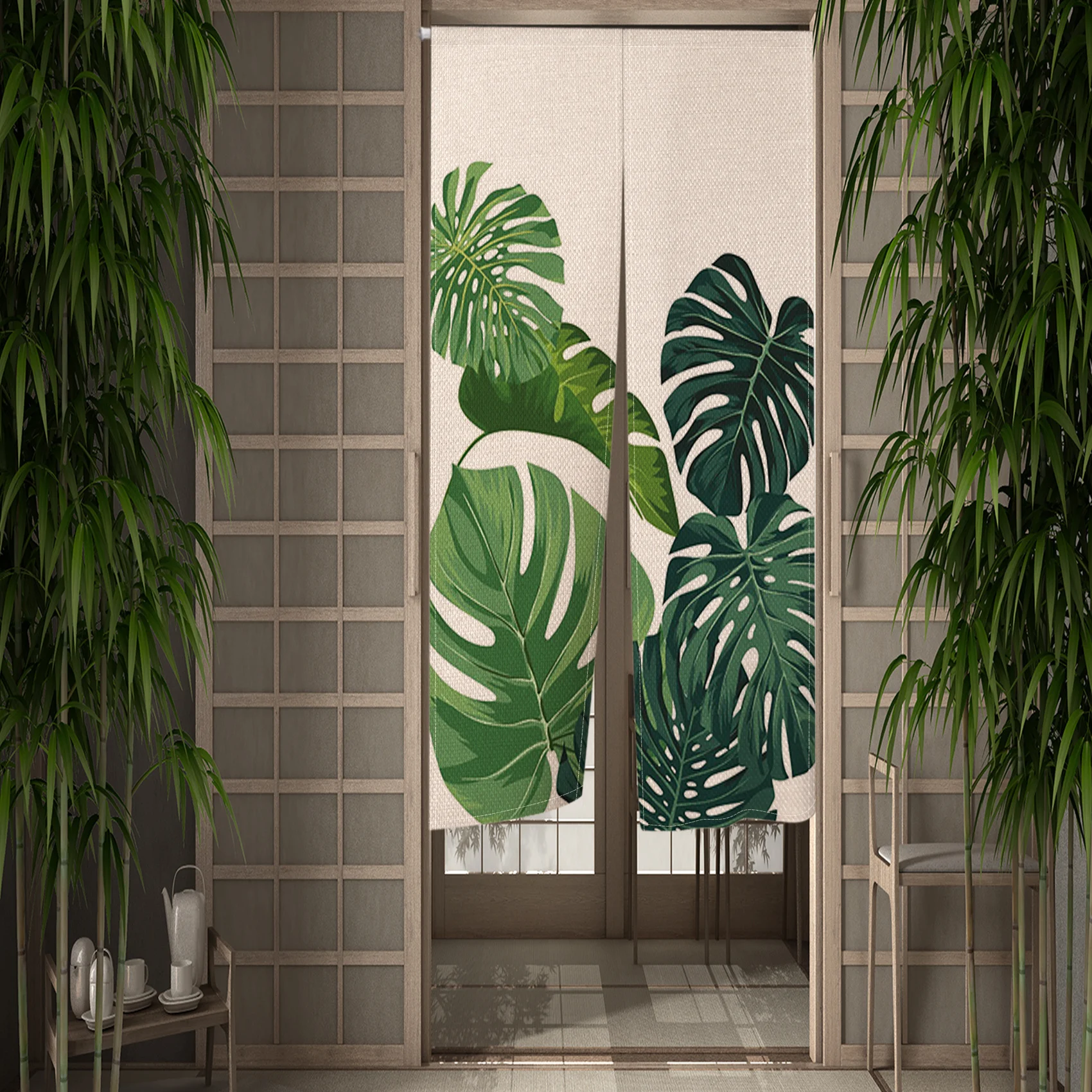 Bring natural freshness into your space with this Japanese-style noren door curtain featuring simple green plant leaves. Perfect for kitchens, cafés, restaurants, and home entrances, this decorative half-curtain provides subtle separation while enhancing the room with a clean, minimalist aesthetic. The lightweight fabric drapes smoothly, allowing easy passage while adding a touch of Japanese-inspired charm. Ideal for partitions, doorways, or wall décor, this noren curtain creates a calming, nature-inspired atmosphere in any space.