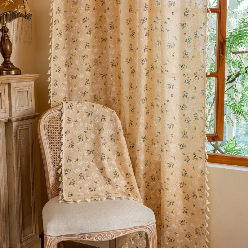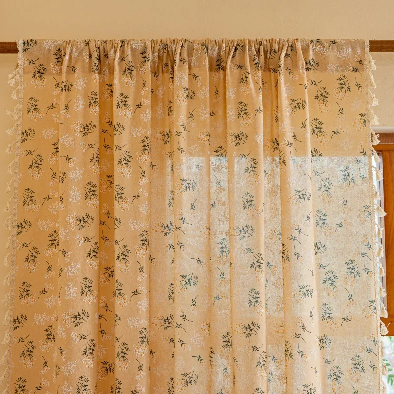 Bring a charming, cottage-style touch to your home with these Korean cotton daisy tassel curtains, designed with a sweet floral pattern and decorative fringe for added texture and warmth. Perfect for kitchens, bedrooms, living rooms, bay windows, cabinets, or small spaces needing a soft shade, this road pocket curtain installs easily and drapes beautifully. The breathable cotton fabric filters light gently while creating a fresh, uplifting look inspired by Korean home décor. Stylish, functional, and delightfully detailed, these curtains add instant personality and cozy elegance to any room.