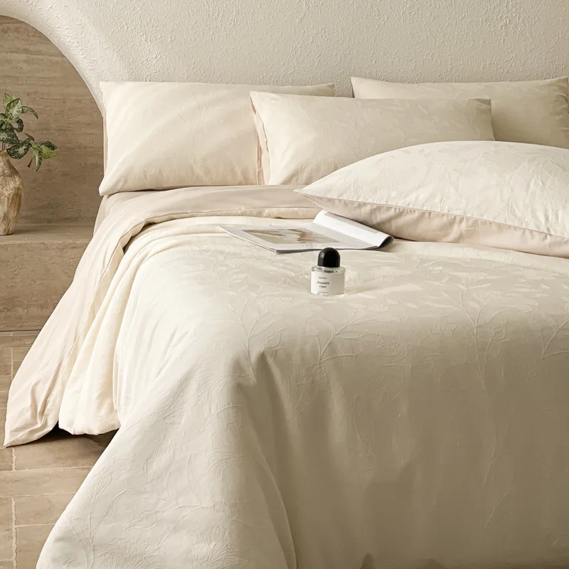 Experience soft, refined comfort with this Light Luxury A-Class 60s Cotton Four-Piece Bedding Set, crafted from 100% pure cotton using premium yarn-dyed and washed jacquard techniques. The solid-color design offers understated elegance, while the breathable, skin-friendly fabric provides exceptional comfort for year-round use. This high-quality cotton maintains its smooth texture and rich color even after repeated washing, ensuring long-lasting beauty and durability. Perfect for modern, minimalist, and luxury bedrooms, this bedding set delivers a clean, sophisticated look with the gentle touch of premium cotton.
