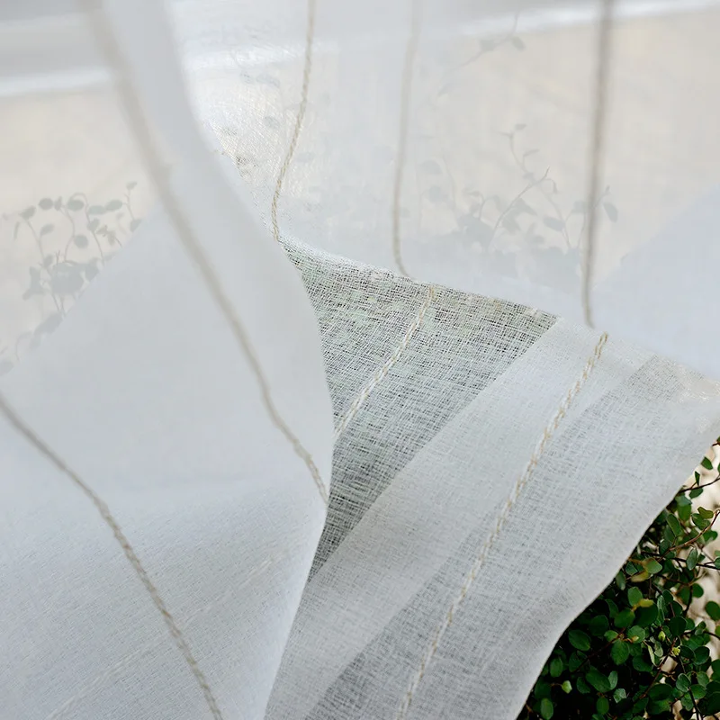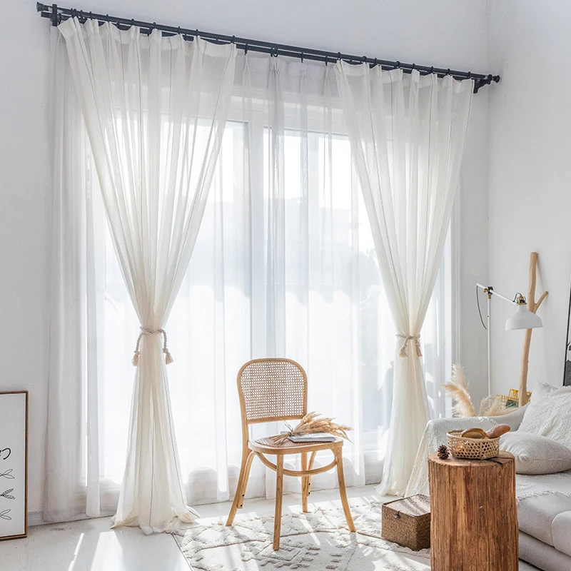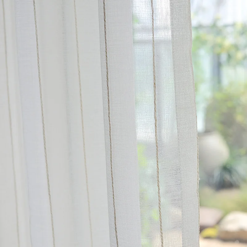 Bring natural elegance and soft minimalism into your home with these Nordic Japanese linen-cotton tulle curtains, designed with delicate stripes and a dreamy floating appearance. Perfect for bedrooms, living rooms, and balcony windows, the lightweight gauze fabric gently filters sunlight while creating a calm, cozy atmosphere. The blend of linen and cotton offers a breathable, textured look that complements modern, Scandinavian, and Japanese-inspired interiors. Finished and ready to hang, these curtains add an airy, stylish touch to any space, making your home feel brighter, softer, and beautifully serene.