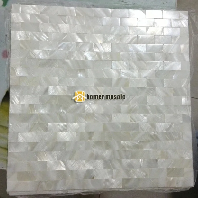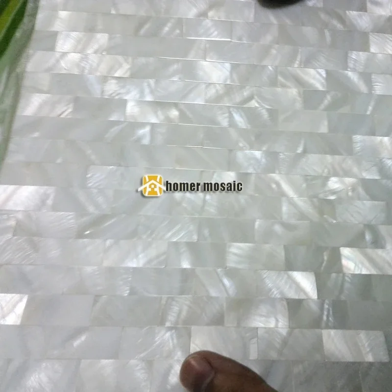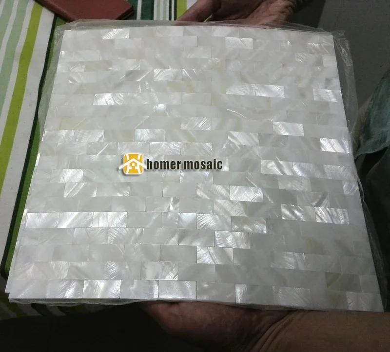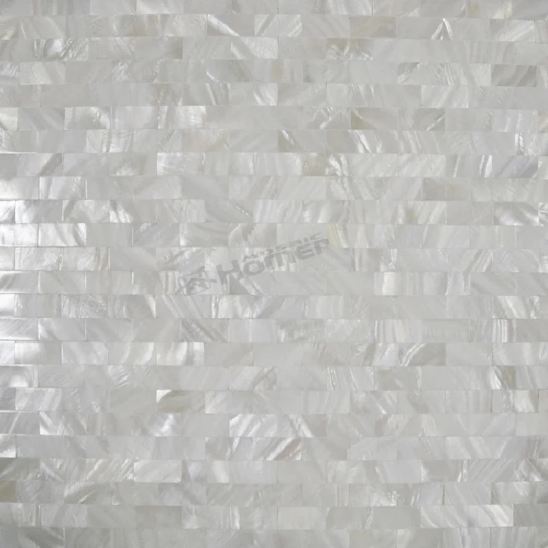 Enhance your space with the timeless elegance of these pure white mother-of-pearl mosaic tiles, crafted in a seamless brick pattern for a smooth, luxurious finish. Made from natural shell, each tile reflects soft iridescent tones that bring light, depth, and sophistication to bathroom walls, kitchen backsplashes, and accent surfaces. The polished surface adds a high-end touch while remaining durable, moisture-resistant, and easy to maintain. Perfect for modern, coastal, spa-inspired, or glamorous interiors, these mother-of-pearl tiles elevate any room with their refined beauty and radiant, organic charm.