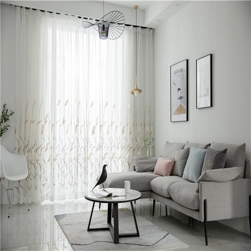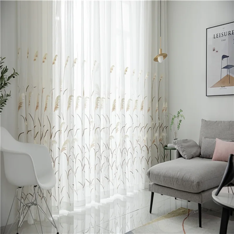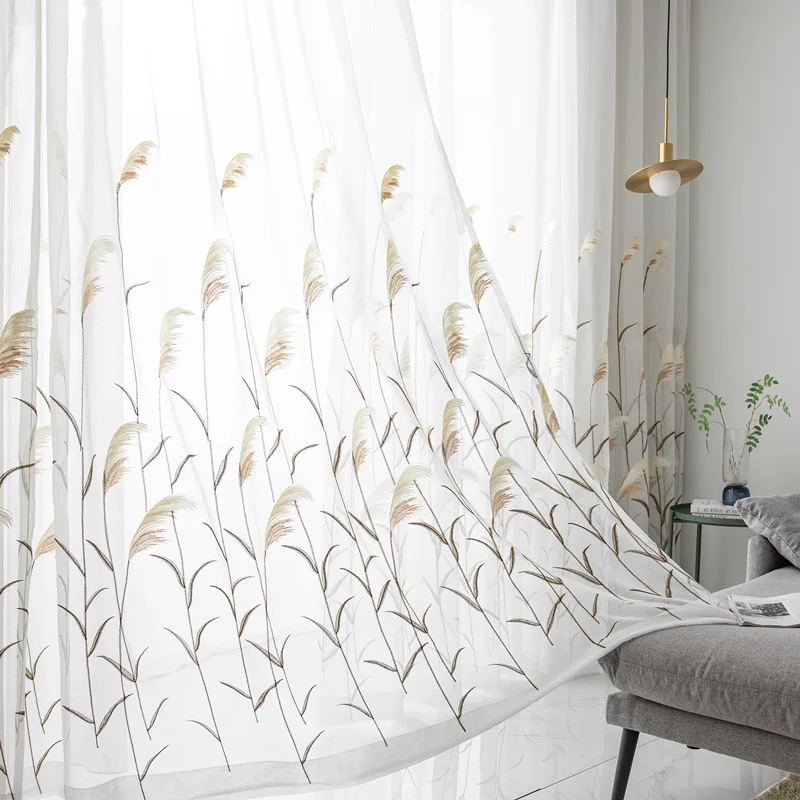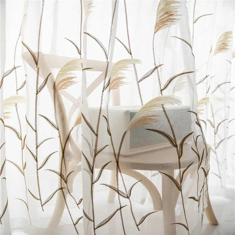 Reed Leaf Embroidered Tulle Curtains