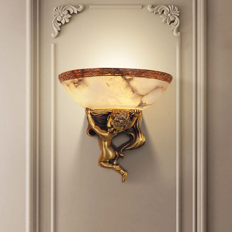 Add timeless elegance to your home with this Retro Marble Pot Angel Wall Light, beautifully designed in a European-inspired style with artistic golden accents. Perfect for living rooms, dining areas, bedrooms, staircases, and hallways, this decorative sconce features a sculpted angel motif paired with a refined marble base for a luxurious vintage look. The warm ambient glow creates a cozy and sophisticated atmosphere, while the high-quality materials ensure durability and long-lasting beauty. Ideal as both functional lighting and a statement décor piece, this wall lamp brings artistic charm and classic elegance to any interior.