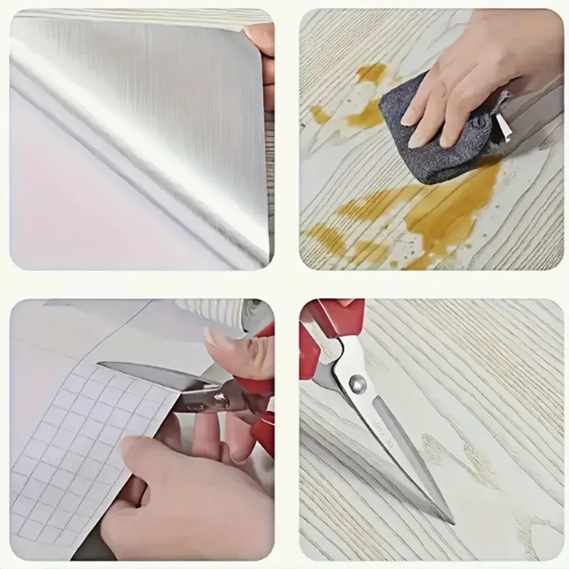 Refresh your space effortlessly with this imitation wood grain self-adhesive PVC wallpaper, designed with a realistic texture that gives furniture and walls a warm, natural look. The thickened, waterproof material ensures durability and easy cleaning, making it ideal for kitchens, bathrooms, cabinets, countertops, and accent walls. Its peel-and-stick backing allows for quick installation without glue or mess—simply measure, cut, and apply for an instant makeover. Perfect for home renovation, décor upgrades, and DIY projects, this wood-style wallpaper delivers a polished finish that enhances any room with rustic elegance.