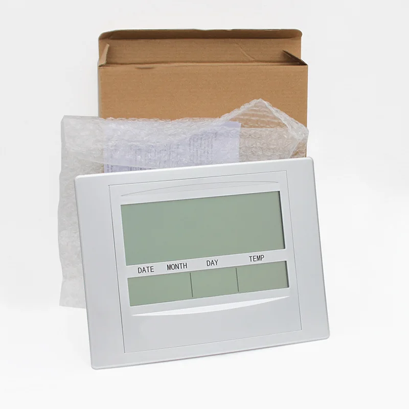 Stay on schedule with clarity and style using this Silver Digital Wall Clock with Large Display, designed for effortless readability and everyday convenience. Featuring a clear digital screen, it displays time, date, and indoor temperature at a glance—making it ideal for homes, offices, classrooms, kitchens, or workspaces.