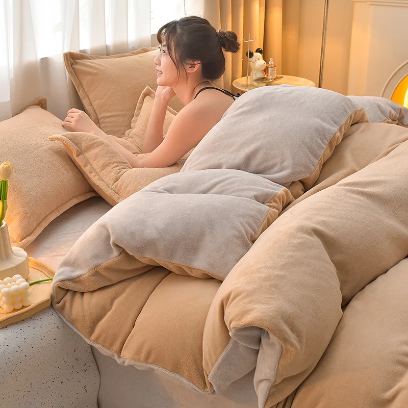 Stay warm and comfortable all winter long with this ultra-soft milk fleece bedding set, crafted from plush coral fleece and flannel for exceptional coziness. Available in 3- or 4-piece options and sized for Queen and King beds, this set includes a warm duvet cover and matching pieces designed to keep you snug during cold nights. The velvety texture provides a soft, inviting feel while adding a touch of winter-ready comfort to your bedroom décor. Perfect for anyone who loves a warm, cozy retreat, this bedding set blends plush softness, durability, and seasonal warmth in every layer.